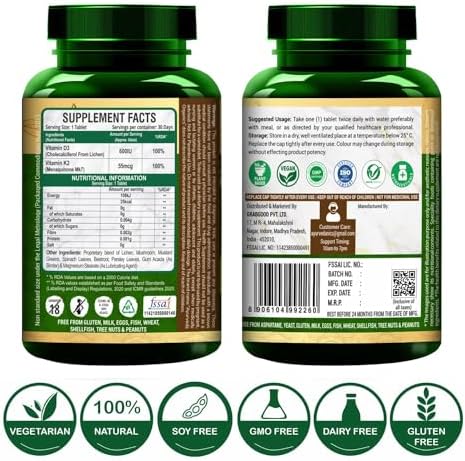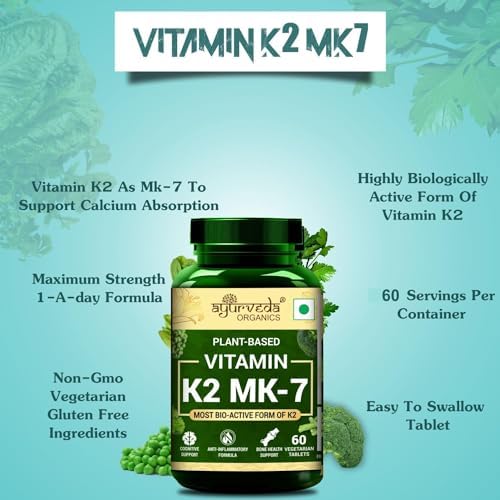Vitamin K2 MK7 55 Mcg Supplement Supports Healthy Heart Stronger Bones & Teeth | Immunity, Muscle, For Bone Support, Joint Support & Energy Supports Supplements – 60 Veg Tablets