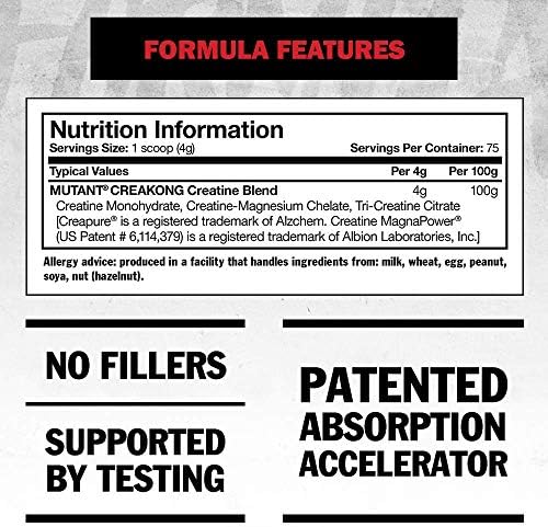 Mutant Creakong, Creatine Supplement and Workout Boost Absorption Accelerator with No Fillers, 300g