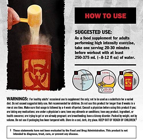 As a dietary supplement for adults performing high intensity exercise, take one serving 20-30 minutes before workout with at least 8-12 fl oz (240-360 mL) of water.