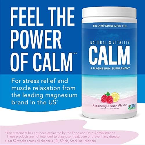 Natural Vitality Calm Dietary Supplement Powder promotes healthy magnesium levels to support stress management for a healthy body. This raspberry lemon flavored Anti-Stress Drink Mix* is formulated with magnesium from the Pacific Ocean that helps boost the essential nutrients your body may be lacking for stress relief, restful sleep and more relaxed muscles. Also contains organic raspberry and lemon flavors and organic stevia for delicious flavor. This vegan and gluten free supplement powder is NON-GMO Project Verified so you can feel good about what you put in your body. This #1 selling supplement** is a winner of 2018 Better Nutrition Best of Supplements Award, 2017 VR Vity Award, 2016 Clean Eating Clean Choice Award, 2015 DL Supplement Award and 2015 TFL Essentials Award to name a few. Find your calm with Natural Vitality, Calm Dietary Supplement Powder.