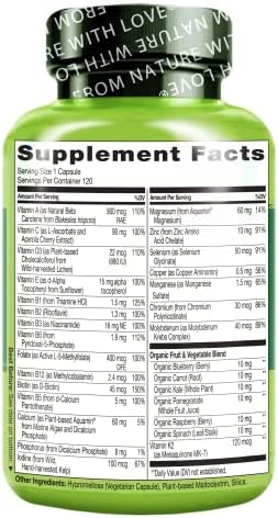 Plant-Based: Featuring premium plant-based vitamins and minerals including as Vitamin D3 from lichen, Vitamin E from sunflower, plant Calcium and Magnesium from marine algae, and Iodine from kelp.