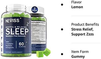 NEVISS Melatonin Free Sleep Aid Gummies for Adults – GABA, L-Tryptophan, Magnesium, Ashwagandha – Non-Habit Forming, Help for Deep Relaxation – Vegan, Meyer Lemon Flavor, 2Pack