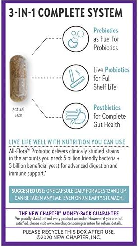 It’s time to rethink probiotic supplements, and seek not just the right amounts of live probiotics for gut health, but also the key fuel and compounds they’ll need along the way. New Chapter®’s Probiotic All-Flora is an advanced formula that harnesses the power of clinically studied probiotics + prebiotics + postbiotics from New Chapter’s signature fermented herbs. Delivers everything you need to nourish inner wellness: prebiotics as fuel for good bacteria, clinically studied live probiotics for advanced digestion and immune support, and postbiotics for complete gut health.* You can count on these clinically studied probiotics to be DNA-tested to assure quality and identity, giving you the exact, researched strains every time. *These statements have not been evaluated by the Food and Drug Administration. This product is not intended to diagnose, treat, cure, or prevent any disease.