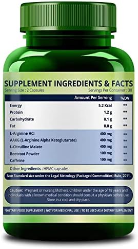 FOR GOOD HEALTH: Nitric oxide Supplement is a healthy and nourishing formula made with the goodness of L-arginine and L-citrulline. It is enriched with BeetRoot, known to intensify the levels of Nitric Oxide without any harm. The proper balance of nitric oxide relaxes the cells that make blood vessels for arterial flexibility and enhances blood flow without any pressure. It keeps your blood pressure and blood sugar levels in check for a healthy body.