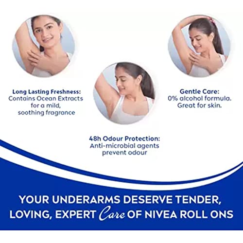 NIVEA Fresh Natural Roll-On Deodorant – 48h Deodorant Protection with Sea Extracts The NIVEA Fresh Natural roll-on deodorant impresses as a reliable deodorant without aluminium (ACH) and reliably protects against unpleasant body odour for 48 hours. The senses are pampered with valuable sea extracts and cooling formula: for a natural feeling of freshness. Equipped with the proven NIVEA care complex and the skin-active formula, the deodorant for women gently nourishes sensitive skin under the armpits. Skin compatibility is dermatologically tested. For a noticeably refreshed skin feeling all day long: NIVEA Fresh Natural Roll-On.