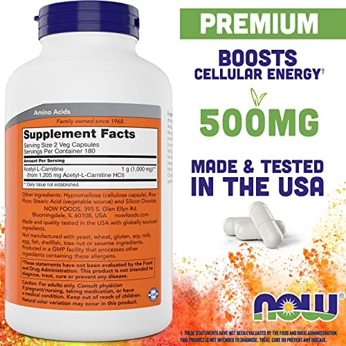 NOW Acetyl L Carnitine 500mg, 360 Veg Caps (Pack of 2) – Non-GMO Foods ACL 500 mg Capsules Supplement for Men and Women