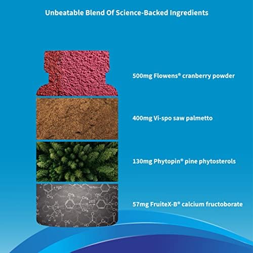 Features Flowens cranberry fruit powder, Vi-spo saw palmetto extract, Phytopin pine phytosterols, and FruiteX-B calcium fructoborate to support normal prostate function and urinary stream