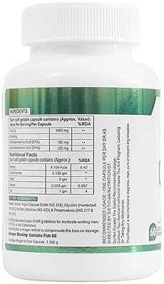Nveeda Omega 3 Fish Oil 1000mg Capsules For Men and Women | Omega 3 Fatty Acid with EPA 180 mg & DHA 120 mg| For Healthy Heart, Joints & Brain | 60 Soft Gel Capsules