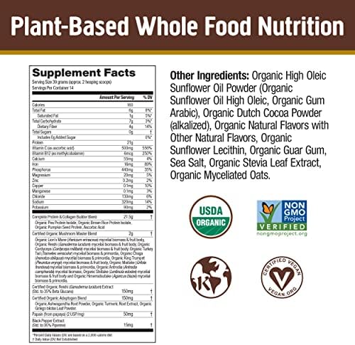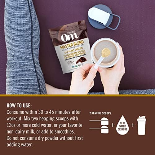 Supercharge Your Recovery and Help Satisfy Hunger: This unique plant-based protein powder supplement from Om Mushroom Superfood offers a blend of 3 organic plant-based proteins, 10 organic whole food mushrooms plus 3 organic botanical adaptogens in one convenient powder to support your vibrant health