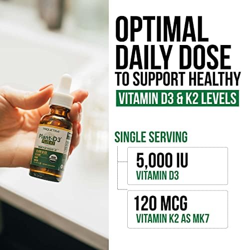 OPTIMAL DOSING & SUPERIOR ABSORPTION | Each serving provides 5000 iu of vitamin D3 and 120 mcg of Vitamin K2 as MK7. The liquid sublingual form also is shown to have up to 300% higher absorption than capsules and tablets.