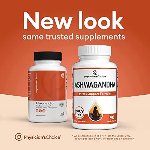 Physician’s CHOICE Ashwagandha 1950mg Organic Ashwagandha Root Powder with Black Pepper Extract, Stress Support, Mood Support Supplement, 90 Veggie Ashwagandha Capsules Each (2 Pack)