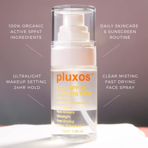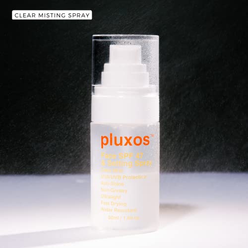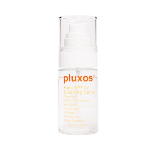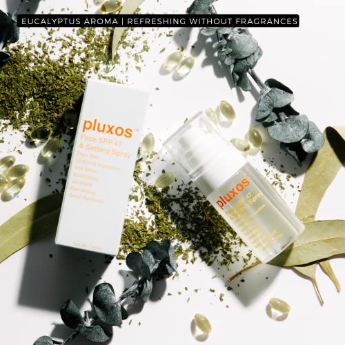 MISTING SPRAY | Most sunscreens are greasy and smell like heavy chemicals. PLUXOS is lightweight, clear and has a light eucalyptus aroma with a refreshing peppermint feel upon impact with skin. No more mess with spreading greasy face sunscreens on hands. With the misting pump action, PLUXOS was designed to be used before or on top of makeup.