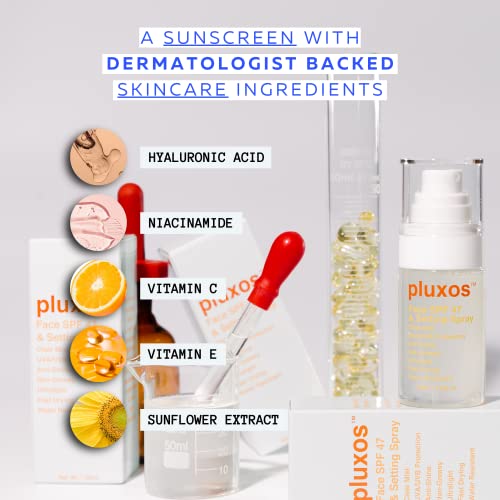 SKINCARE SUNSCREEN | Treat wrinkles and fine lines with anti-aging ingredient Vitamin C. Fight acne, dark spots and uneven skin with Tea Tree and Vitamin E. Moisturize and hydrate to repair the skin and boost cell production with Hyaluronic Acid and Niacinmade. PLUXOS 47 is a complete skincare routine, the same formulas found in your complete skincare products from your favorite brands.
