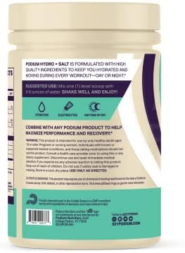 HELPS SUPPORT A HEALTHY BODY: Podium Nutrition, BCAA Powder, Hydro + Salt provides needed electrolytes and hydration for an active lifestyle. Plus, BCAAs have been shown to build muscle, decrease muscle fatigue, and alleviate muscle soreness. Podium Hydro + Salt is formulated to keep you moving well during and after a workout.