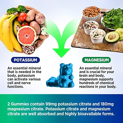 【High Potency】: 2 Gummies contain 99mg potassium citrate and 180mg magnesium citrate. Potassium citrate and magnesium citrate are well absorbed and highly bioavailable forms.