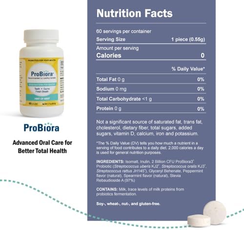 ProBiora Hint of Mint Oral-Care Chewable Probiotic Tablets (Formerly ProBioraPlus) | Probiotic Supplement for Women & Men | Healthier Teeth & Gums | Fresher Breath | Whiter Teeth | 60 Count