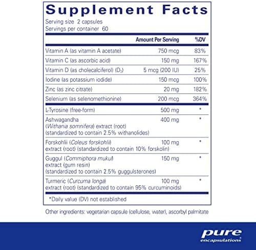 Pure Encapsulations Thyroid Support Complex – Hypoallergenic Supplement with Herbs and Nutrients for Optimal Thyroid Gland Function* – with Vitamin A, C, D, and Selenium – 120 Capsules