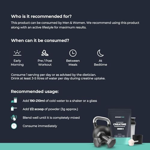 Our quality and pure creatine monohydrate powder is cost-effective. Mix 3g (about half Scoop) of Creatine with 190 ml to 210 ml of water, juice or protein. Unflavored can be mixed with your favorite beverage with ease.