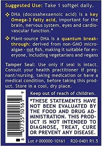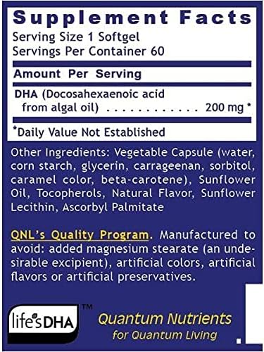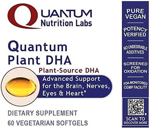Quantum Nutrition Labs Plant DHA, Dietary Supplement. 60 Plant-Source Capsules. Advanced Support for the Brain, Nerves, Eyes, and Heart. Quantum Plant DHA goes a step further – offering a plant-source form of DHA that is carrageenan-free. In addition, this revolutionary product is encased in HPMC capsules, which are carefully made from cellulose rather than gelatin to remove any unwanted animal products from this formula. This plant-source DHA featured in Quantum Plant DHA is perfect for everyone, including vegetarians and vegans! Quantum Nutrition Labs is proud to offer a high-quality nutritional product line to meet all the needs of you and your family. We provide a wide range of quantum-state nutritional formulas, including Quantum Plant DHA. Our products are manufactured and diligently tested for identity, purity, strength, and nutrient content, non-organic materials, that may negatively impact health. These ultra-quality products provide you with full confidence in our company’s integrity that you can count on day in and day out. Please enjoy adding Quantum Plant DHA to your daily nutritional regimen and feel the difference. Go Quantum!