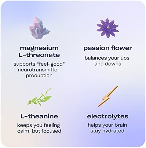 Now featuring 50% DV of magnesium per serving, with magnesium L-threonate, a new form of magnesium shown to effectively increase brain magnesium levels, passion flower and L-theanine to calm the mind, and electrolytes for hydration.