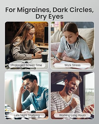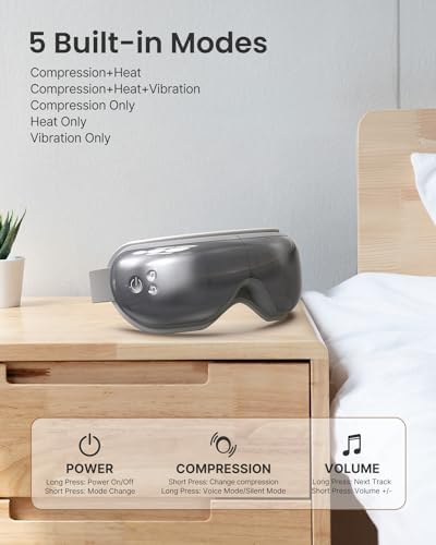 Relaxing Eye Care: With oscillating pressure and rhythmic percussion, massaging unwinds and rejuvenates the delicate skin around your eyes, fostering a sense of relaxation and relief. Experience a massage around your eyes with different modes, RENPHO heated eye mask uniquely combine natural remedies with modern technology.