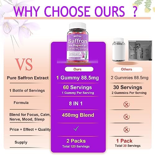 🍴REDUCE HUNGER, EAT LESS >>> Saffron supports healthy eating and good mood. Avoid excessive calorie intake due to stress and bad mood. Combined with exercise, you’ll finally win the battle against stubborn fat. Saffron Blend Gummies contains Rhodiola and Rosemary extracts to synergistically support antioxidants and more. The gummy is raspberry-flavored, organic, and vegan. The delicious gummies are the perfect alternative to other saffron supplements such as saffron capsules, pills and powder.