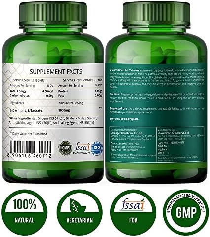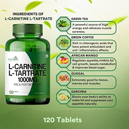 Sheltr L -Carnitine with L Tartrate Tablets 1000mg Pre Workout Supplement for Muscle Recovery & Weight Management Enriched with Essential Amino Acids Promotes Heart Health (120 Tablets)