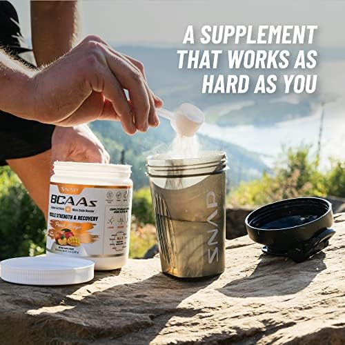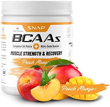 Snap BCAA Powder Essential Amino Supplement with Nitric Oxide Booster – Pre Workout Powder, Recovery Supplements Post Workout, Muscle Strength, BCAA for Women & Men (30 Servings) (Peach Mango)