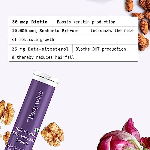 Bodywise Biotin 10000mcg Sesbania Effervescent Tablets for Women (15 Tablets) | Hair Supplement for Hair Growth, Hair Fall Control, Healthy Glowing Skin & Nail Growth | 100% vegetarian, sugar-free, Non-GMO formula