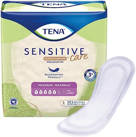 Tena, trusted by millions of women worldwide, continues to keep your intimate skin a priority. Tena Sensitive Care Maximum Regular Incontinence Pads are now the first ever bladder weakness pads enriched with our SkinComfort Formula. Our skin friendly layer in combination with our soft and 100% breathable materials, help protect intimate skin. Our triple protection against bladder leaks odor and wetness, Duolock core, and cushiony foam side barriers offer skin comfort and security. Tena Sensitive Care Maximum Regular pads are designed for continuous heavy leakage and for women experiencing post-partum incontinence.