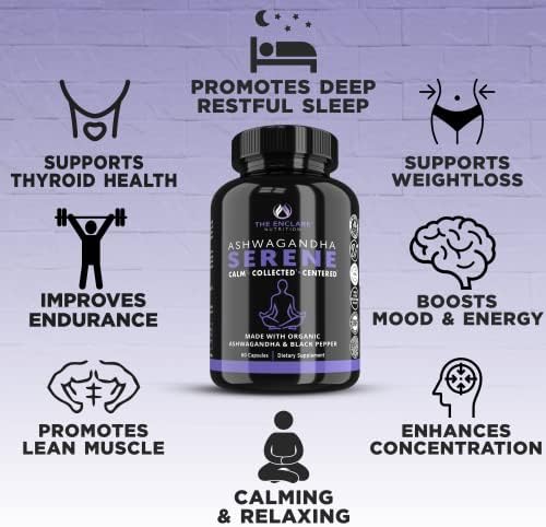 🧘♀️YOUR PEACEFUL AND RESTFUL SLEEP SOLUTION: Ashwagandha Powder Supplement Natural Sleep Aid Helps Your Body Relax So You Fall Asleep Faster, Feeling More Relaxed And With Less Worry And, Wake Up More Refreshed. Ashwagandha Pills Support Restorative Rest And Healthy Immunity. Natural Ashwagandha Root Is An Adaptogenic Herb Which Can Reduce Cortisol Levels, Balance Thyroid Hormones, And Adrenal Fatigue Stress. Pair Enclare Serene With Enclare Thyroid Harmony And Enclare Sleep Paradise.