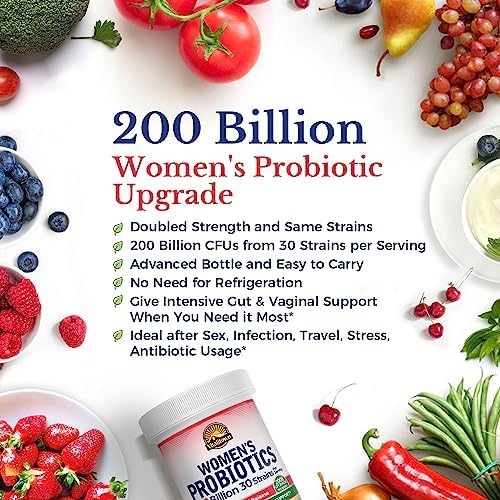 Pro + Pre + Digestive Enzymes + Organic Cranberry: Our 200 Billion Women’s Probiotics is enhanced with organic cranberry extract, plant-based digestive enzymes, and water-soluble prebiotics fiber to help support the gut, immune and vaginal health.* All the ingredients work synergistically to maximize their strength and maintain natural gastrointestinal & urinary tract balance.* Ultra Strength 200 Billion Women’s Probiotic is here for the maximum reinforcement of gut health and vaginal cleanse.*