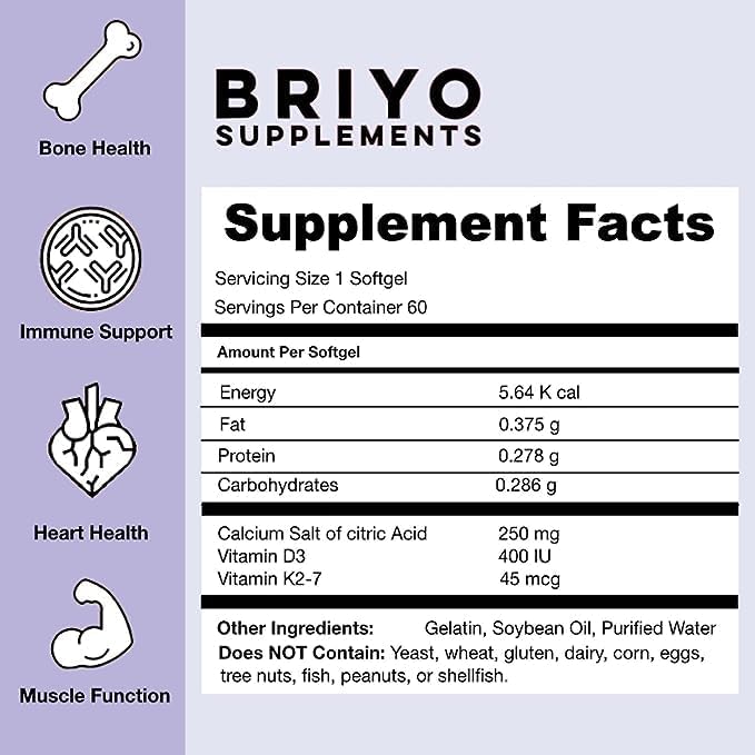 Just one small, easy-to-swallow softgel of Vitamin K2, Vitamin D3 and calcium per day, is considered beneficial for strong bones, a healthy cardiovascular system, and a strong immune system.