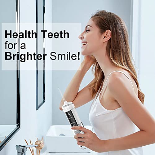 [OLED DISPLAY & POWERFUL BATTERY LIFE] The OLED screen make it easy to read the current flossing mode and the remain power. Rechargeable oral irrigator is able to last for 50 days once fully charged. Water flosser comes with a USB charging cable for charging anywhere. Great for carrying and traveling.