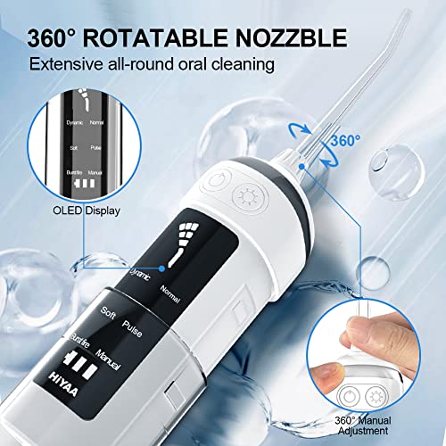 [IPX7 WATERPROOF & EASY CLEANING] IPX7 waterproof design is adopted in both internal and external to provide dual protection, Due to the open tank & detachable design, it’s much easier to clean inside of the tank. You can enjoy the convenience of cordless water flossing and can use with confidence when showering. The HIYAA dental flosser, is FDA approved and We provide 30 days hassle- free return policy and six months warranty, your purchase is totally risk-free.