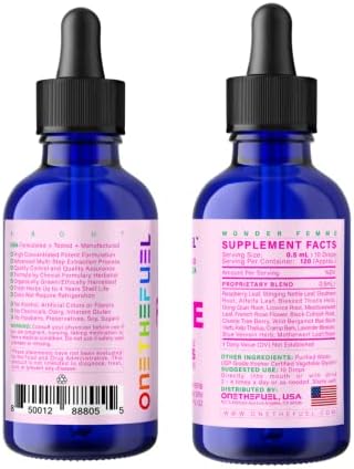 – MADE IN THE U.S.A* Biological Tincture Processed. Formulated by Certified Clinical Herbalist Pharmacologist. ONETHEFUEL Premium Liquid Supplement- Wonder Femme 2oz 120 Serving Drops