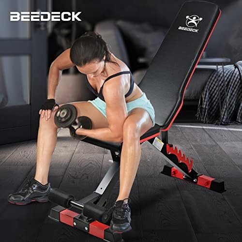 BEEDECK Adjustable Weight Bench is fit for multiple exercises such as bench press, sit ups, weight lifting, and dumbbell curling, etc