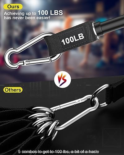 💪250lbs Heavy Resistance Bands — Each fitness band corresponds to a different color at a glance, gray (10 pounds), blue (20 pounds), purple (40 pounds), grass green (80 pounds), black (100 pounds), can be used individually or in combination, from 10 pounds to 240 pounds seamlessly, to meet the different needs of beginners to professionals—exclusive 100-pound tension rope, specifically designed for men’s exercise.