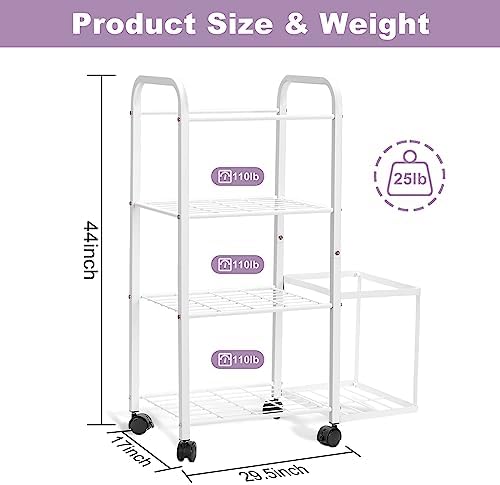 STRONG STRUCTURE:This workout equipment yoga mat storage rack is made of 4-tier high-quality metal storage racks and a storage basket, not easy to rust and corrode, strong structure, it can hold your weights and weighted bars without bending, frees up so much floor space,you can be used for years. bearing up to 120lbs