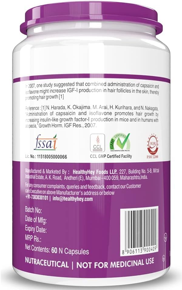 RESEARCHED FORMULA: The Research suggested that combined administration of capsaicin and isoflavone helps promoting hair growth.